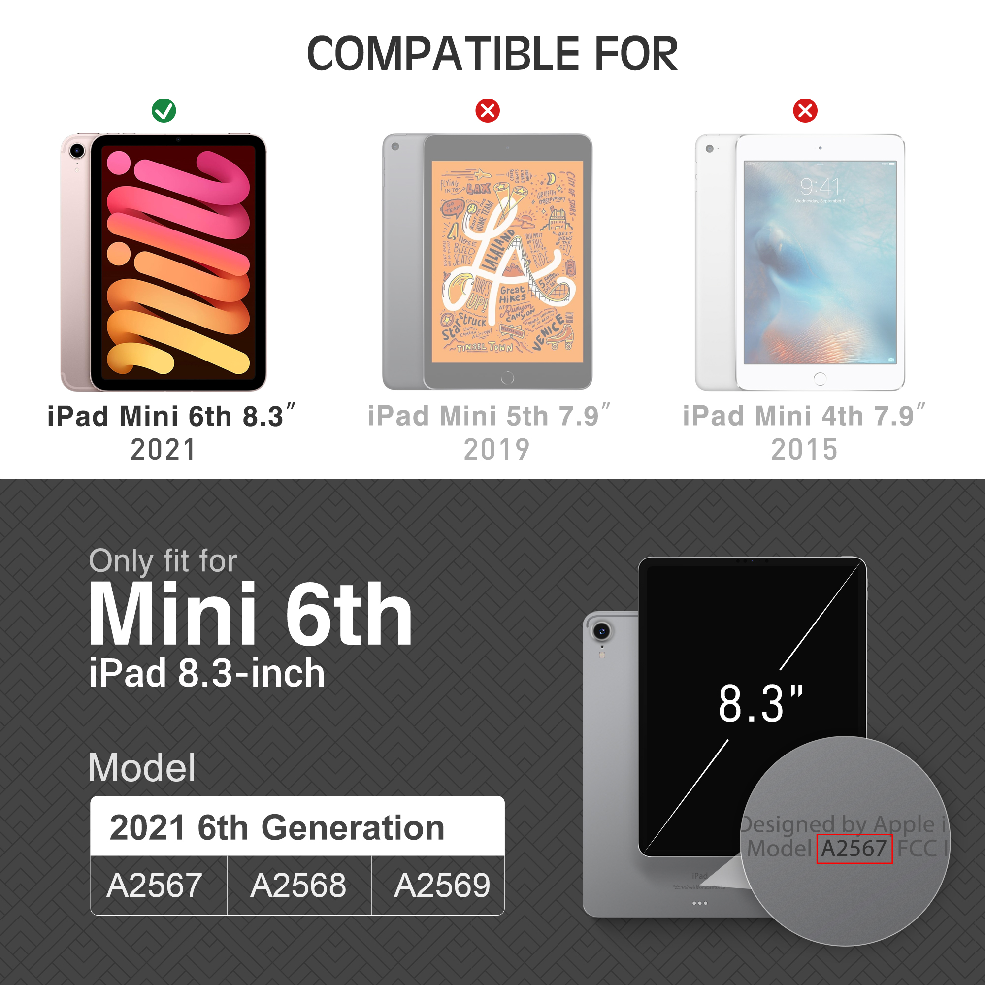 【Perfect Match】 Designed for New Apple iPad mini 6 8.3-inch 2021 model (A2567/A2568/A2569). Allows easy access to all buttons, controls and ports without removing the case. ⚠️NOT fit for other iPad model. Please check your iPad back shell to identify your model before purchasing.