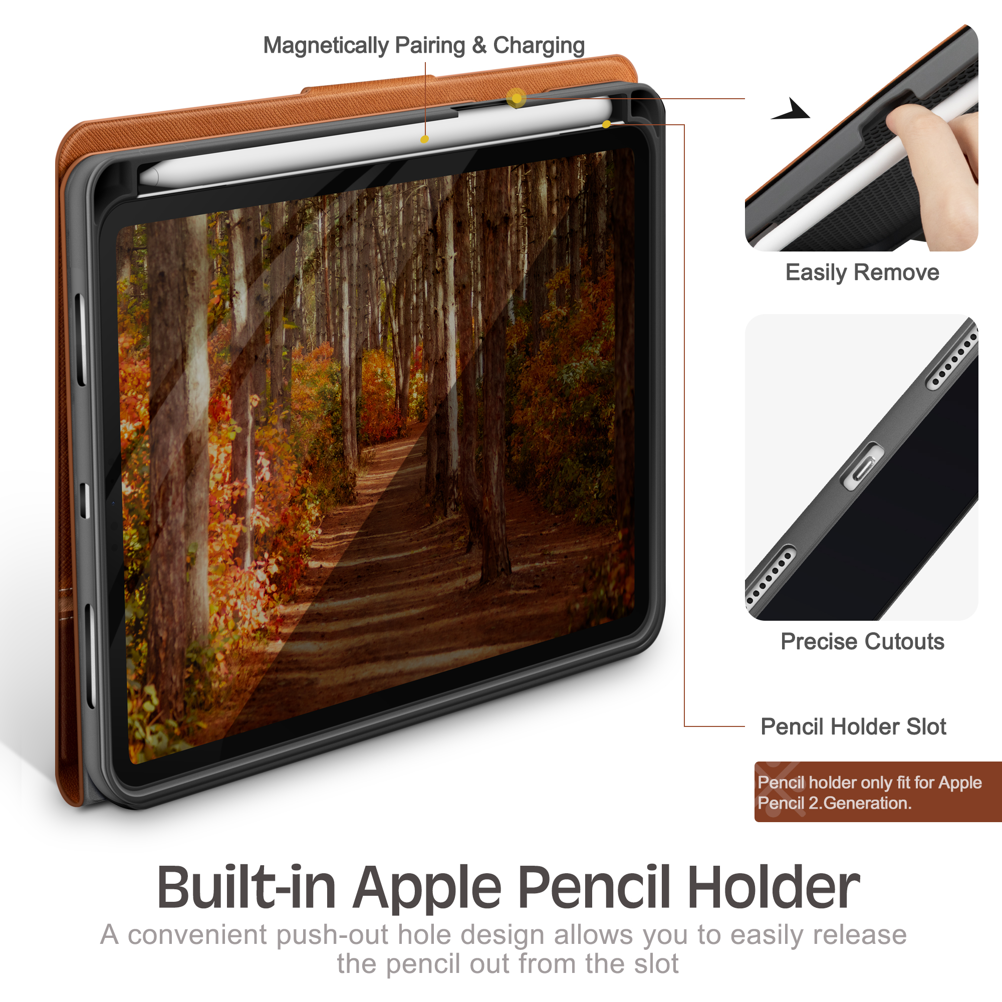 【Built-in Apple Pencil Holder】 Built-in pencil holder allows you easy to pull out and store your Apple Pencil inside the case securely. ⚠️Notice: Apple Pencil2 and Adapter only for illustration, not included.