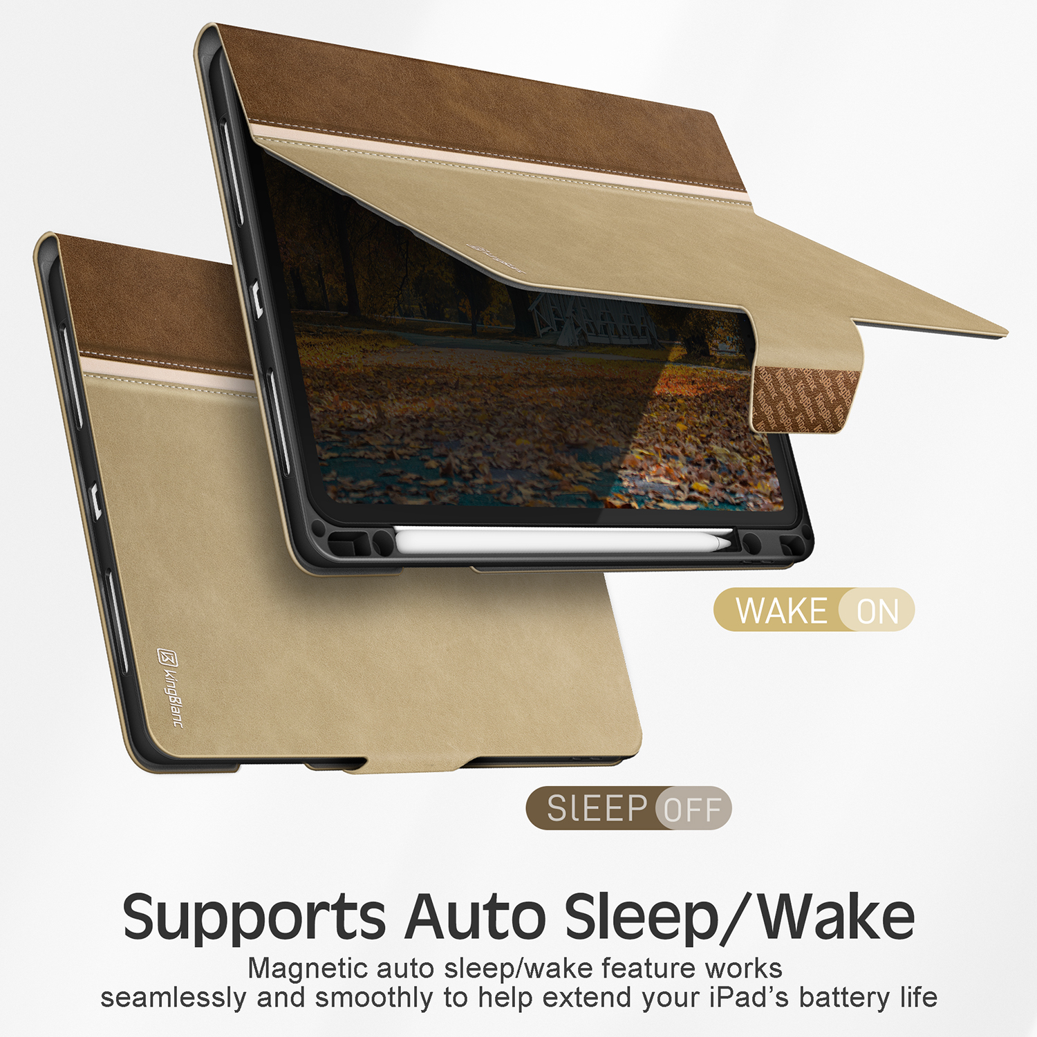 【Auto Sleep/Wake】Support auto-wake/sleep function with easy snap on and off the iPad protective case to help extend your iPad’s battery life.